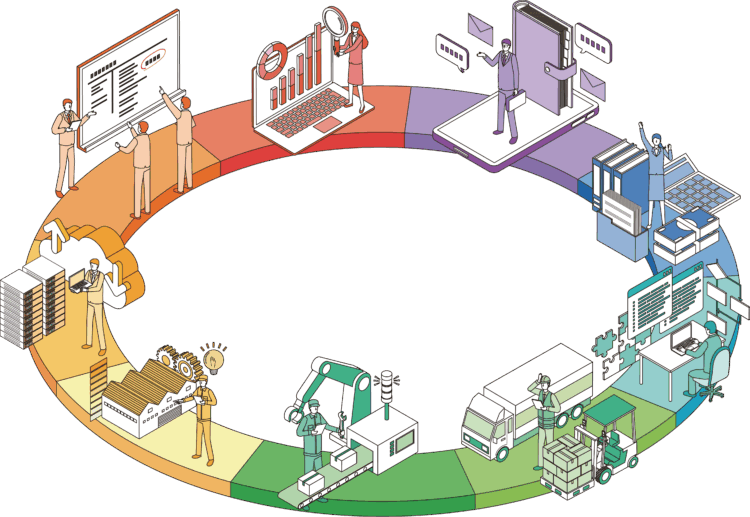 例えば、製品の設計には開発部、ものづくりには製造部、検査には品質管理部や検査部など、工程ごとに関わる部署があります。