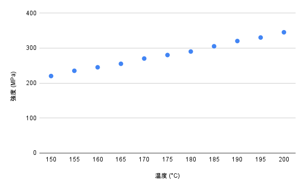 使用例:製品を作る工程で、温度と製品の強度を測ったデータを散布図というグラフに点で表すと、温度が高くなると強度がどう変わるか(例えば、温度が高いほど丈夫になるなど)の関係が見えてきます。