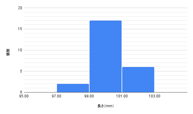 使用例:ある工場で、製品の長さを毎日3個ずつ測っています。いつもだいたい10cmで作っていますが、少しばらつきがあります。